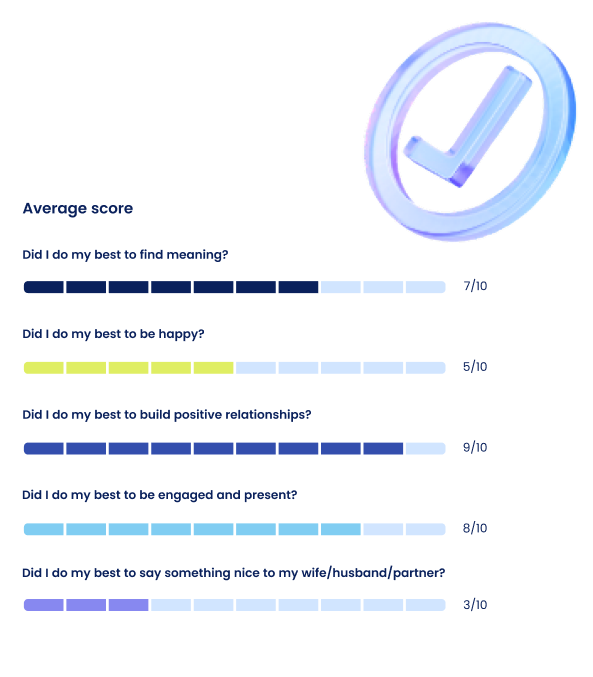 Build clarity in minutes a day. A single guided question helps you pause, notice patterns, and choose the next right step. Over time, these micro-reflections add up to better habits, steadier moods, and more intentional choices.